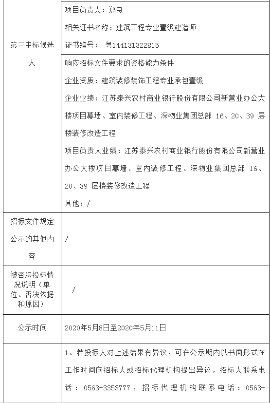 當(dāng)前位置:首頁(yè)>> 公司要聞>> 公告公示>> 大唐御苑58#、59#樓、大唐鳳凰城6#樓公租房裝飾工程中標(biāo)候選人公示